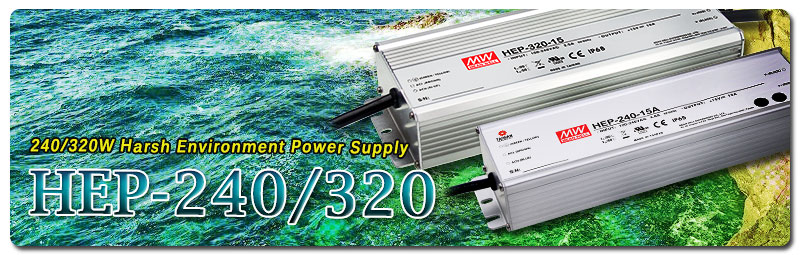 In order to meet the demands for high-grade AC/DC power supply -with low noise and has to operate under highly humid, highly dusty, highly oily, highly salty, ultra-low or high temperature, heavily vibrating, high altitude and poor ventilation environment- we use MEAN WELL 240W/320W ~HEP-240/320series.